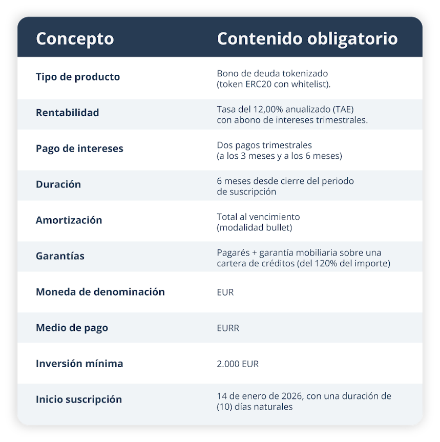 Tras el rotundo éxito y la validación de este modelo, extendemos la invitación a formar parte de nuestra segunda emisión de bonos tokenizados . Esta es la oportunidad de continuar explorando las ventajas de las finanzas digitales de manera segura y regulada, capitalizando la experiencia y la infraestructura probada en nuestro primer hito.